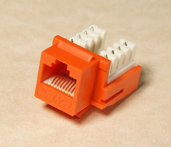 Keywords: Keystone module CAT5 orange.jpg en A keystone module electrical connector for a CAT5 Ethernet network cable Own Dmeranda 2009-05-21 Josve05a <span class signature-talk > RJ-45 connectors Keystone modules