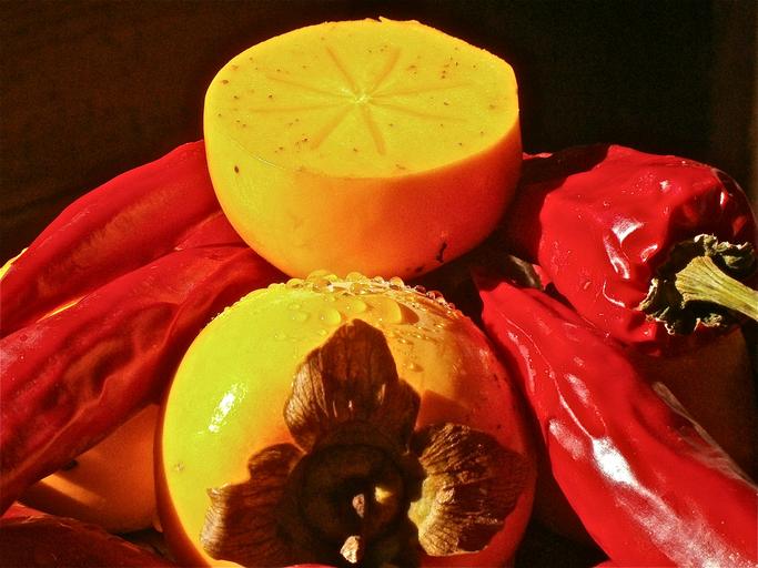 Keywords: khaki diospyros kaki fruit 3cmlong persimmons vegetable pepper tree nature