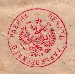 | Keywords: Kharkov ravvin 1903.jpg Русский Печать ав в ина го ода Ха ькова 1903 год own scan official paper document 1903 Kharkov ravvin PD-RU-exempt seals PD-old-70 PD-RusEmpire <references/> Religion in Kharkov Governorate Seals of Kharkiv Eagles in heraldry Judaism in Ukraine Judaism in Russia Synagogue in Kharkiv 1903 in Kharkiv |