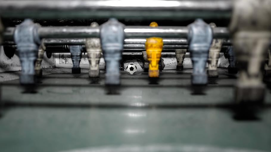 Keywords: kicker football players black and white sport play fire doors soccer table game device table football fun ball foosball table goal