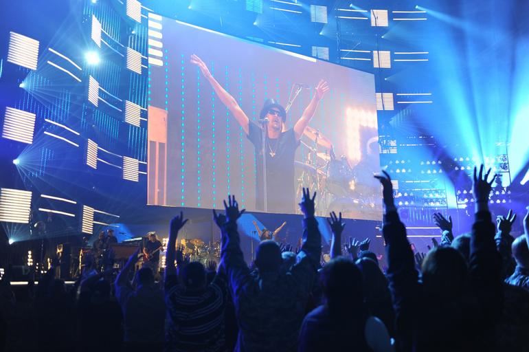 Keywords: kid rock concert auditorium performance entertainment music on stage famous known celebrity screen spectators fans norfolk virginia