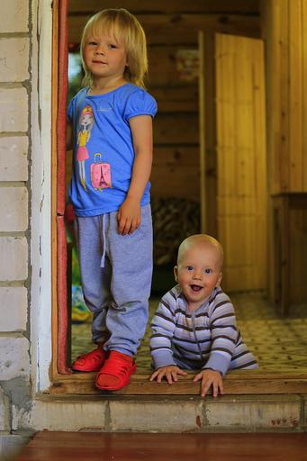 Keywords: kids brother and sister nikita and lease russia joy communication friends two figures boy and girl brother boy surprise cute emotions friendship warm communication russian children