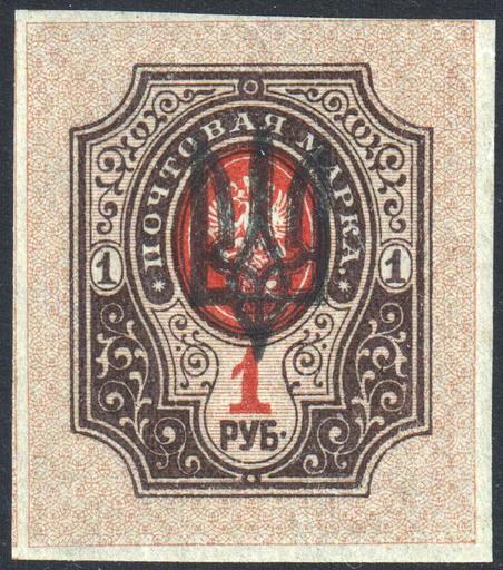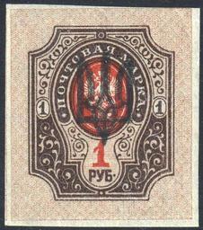 Keywords: KievIII1rub.jpg Ceresa May 1986 The Postage Stamps of Russia 1917-23 2 Ukraine Part 9/13 The Trident Issues of Kyiv Types I II and II 210-213 Russian Philatelic Desk Top Publications Felpham Great Britain B0007BFS90 </ref> Signed Seichter Initially independent Ukraine allowed postage stamps of czarist Russia to be postally used On 20 August 1918 the Ukrainian Postal Ministry ordered all postage stamps used on Ukrainian territory to be overprinted with the national emblem the trident After 1 October 1918 Russian stamps became invalid without this overprint Ukraine had six postal districts Kiev Poltava Katerynoslav now Dnipropetrovsk Kharkiv Odessa and Podillia Each district utilized a number of distinct overprinting devices Trident-overprinted provisionals thus varied in size color and form About seventy-five basic overprints with at least fifty variants are identified including local ones The total number of different types of overprints is estimated to exceed 1 500 Provisional trident-overprinted stamps remained in use for some time after the fall of the Ukrainian government The latest authenticated date of usage is on an Odesa postal card from Pryvilne to Kharkiv dated 8 February 1926 Many counterfeit overprints exist Catalogue Kyiv type III Ceresa 597 1919 1923 Scan of original Government of Ukraine PD-Ukraine PD-old Sources reflist Trident issues of Ukraine Kiev Overprints on stamps of the Russian Empire Stamps possible wrong license