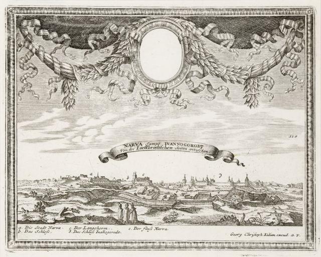 | Keywords: Kilian narvajaivangorodliivimaapoolt.jpg Artwork Creator Georg Christophe Kilian žNarva ja Ivangorod Liivimaa poolt vaadates mid other date century 18 etching copper engraving paper cm 19 6 31 4 Museum Kumu accession number EKM G 13 object history credit line Jacob Stael von Holsteini ja Chr Rothgiesseri järgi A Oleariuse 1656 a teosest http //digikogu ekm ee/vana/oid-2809 Art Museum of Estonia's Digital Archive PD-old-100 18th-century etchings Georg Christoph Kilian History of Ivangorod Narva in the 17th century |