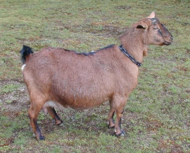 Keywords: Kinder goat standing.jpg en A Kinder goat standing on a mossy lawn own Herr Beethoven 2010-4-8 Kinder goats