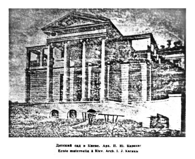 Keywords: Kindergarten Orlenok by Joseph Yulievich Karakis - photo from 1941.jpg en First kindergarten in Kiev Ukraine Designed by architect Joseph Yulievich Karakis and named Orlenok photo from 1941 ru Пе вый детский сад го ода Киев 1939 - Детский сад 1 «О ленок» завода «А сенал» а хитекто Иосиф Юлиевич Ка акис Journal А хитекту а СССР number 2 1941 Architect Joseph Yulievich Karakis Author of the picture unknown 1941 PD-Ukraine 1940s 5 Askoldiv Lane |