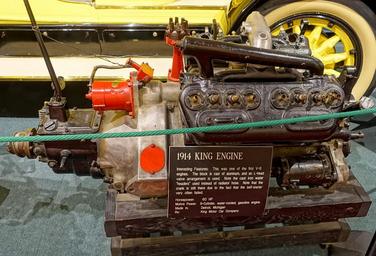 Keywords: King engine, 1914, King Motor Car Co., Detroit, 60 HP, cast aluminum, 8 cylinder, V-8 gasoline engine - Luray Caverns Car and Carriage Museum - Luray, Virginia - DSC01259.jpg en Exhibit in the in the Luray Caverns Car and Carriage Museum Lurary Virginia USA 2015-07-11 11 33 59 own Daderot other versions cc-zero Collections of the Luray Caverns Car and Carriage Museum King automobiles