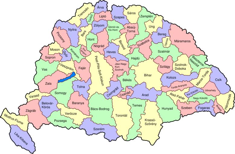 | Keywords: Kingdom of Hungary counties-2.svg  Map of counties of Kingdom of Hungary Hungary proper and Croatia Slavonia 1886-1918 I have organised this into layers Three layers of paths for the counties for the county borders and for external border and one layer for the text labels I have added basic styles and classified all elements I have given all elements reasonable IDs the counties the county name and the borders the names of the counties on each side and the text labels the names of the counties with underscores indicating where they are split across labels The counties are classed into four styles to make a four colour map of course the colours can be changed just by changing the style there as a fifth style for Lake Balaton which does not show up very well on tis uploaded one The main thing now is to fix the text styles Kingdom_of_Hungary_counties svg 2009-12-03 01 14 UTC Kingdom_of_Hungary_counties svg User IMeowbot derivative work SimonTrew <span class signature-talk >talk</span> As described - added more useful metadata and structure SimonTrew Kingdom_of_Hungary_counties svg Licensing IMeowbot 779x513 228524 Bytes <nowiki>line weight</nowiki> 2006-04-30T21 34 49Z IMeowbot 779x513 225942 Bytes <nowiki></nowiki> 2006-04-30T18 34 30Z IMeowbot 779x513 199213 Bytes <nowiki> Map of late 1870s Hungary counties own drawing April 30 2006 User IMeowbot </nowiki> Uploaded with derivativeFX Maps of counties in the Kingdom of Hungary Maps showing 19th-century history SVG maps of Hungary |