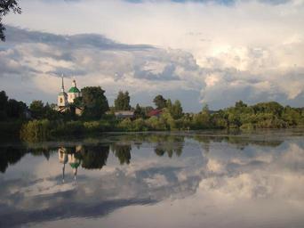 Keywords: kiovo russia scenic sky clouds forest trees woods church architecture lake water reflections nature outside summer spring