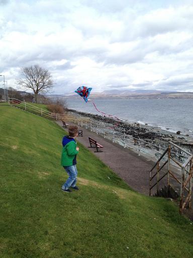 Keywords: kite outside seaside beach fly kid outdoor happy summer sky green activity wind nature playful playing smile child