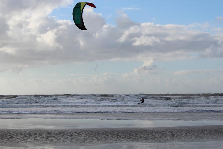 Keywords: kite surf north sea beach kite water sports wind surfer sea coast wave