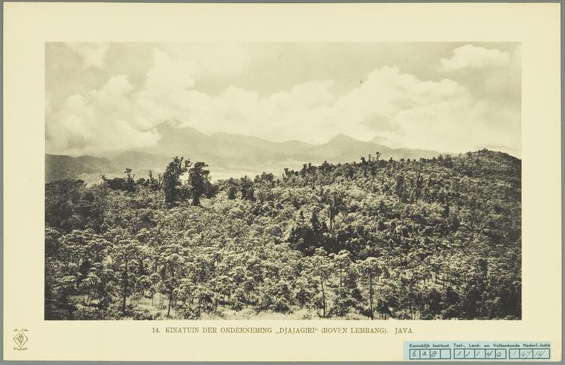 | Keywords: KITLV - 37344 - Demmeni, J. - Tulp, De - Haarlem - Cinchona plantations of the plantation Jaya Giri near Lembang, Java - 1911.tif nl Kina aanplant van de onderneming Djajagiri bij Lembang Met onderschrift 14 Kinatuin der onderneming 'Djajagiri' boven Lembang Java en Cinchona plantations of the plantation Jaya Giri near Lembang Java Caption 14 Kina garden of the company 'Djajagiri' above Lembang Java 14 x 23 5 cm exhibition history Universiteitsbibliotheek Leiden Koninklijk Instituut voor Taal- Land- en Volkenkunde nl Foto - Fotolithografie en Photograph - Photolithography keywords Bandung - cinchona - Indonesia - Jawa Barat - landscapes - plantations Album number 320 nl Bijzonderheden Korte toelichtende tekst bij het plaatwerk Indiƫ in beeld' / uitgegeven door den A N W B Toeristenbond voor Nederland - Haarlem De Tulp 1911 - 23 p object history origin PD-old-70-1923 KITLV donation Demmeni J Demmeni Jean 1866-1939 - Tulp De / Haarlem http //media-kitlv nl/all-media/indeling/detail/form/advanced q_search_signatuur 37344 Leiden University Library KITLV image 37344 http //media-kitlv nl Homepage media-kitlv nl KITLV Uploaded with GWToolset KITLV_-_37344_-_Demmeni _J _-_Tulp _De_-_Haarlem_-_Cinchona_plantations_of_the_plantation_Jaya_Giri_near_Lembang _Java_-_1911 https //socrates leidenuniv nl/wikiMedia/37344 tif Media contributed by KITLV Photographs by Jean Demmeni from KITLV Uncategorized 2016 July 2 |