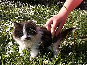 MAKE A MEME View Large Image kitten black white detail hand lawn garden