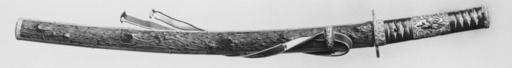 | Keywords: Kiyoshige - Short Sword with Chrysanthemums on the Fittings - Walters 511257.jpg Walters Art Museum artwork Creator Kiyoshige <br/> ca 1800 late Edo lacquer silver gold copper alloy wood cm 54 1 l accession number 51 1257 17555 Henry Walters Baltimore date and mode of acquisition unknown Walters Art Museum Henry Walters Acquired by Henry Walters Signature Ichigyokudo Eizui; Transcription Choshu ju Fujiwara Kiyoshige saku; Translation Made by Kiyoshige of the Fujiwara clan living in Choshu province place of origin Choshu in present-day Yamaguchi Japan Walters Art Museum license Japanese swords and koshirae in the Walters Art Museum Koshirae wakizashi Narita Eizui Kiyoshige |