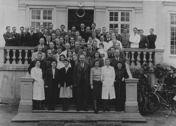 | Keywords: kjesäter flyktningemottak vårslipp vårslipp 2012 vårslipp2012 andre verdenskrig andreverdenskrig 2. verdenskrig 2verdenskrig nordmenn i sverige under krigen nordmennisverigeunderkrigen blackandwhite monochrome black and white Norsk mottagercentral på Kjesäter. På Kjesäter slott i syd-Sverige har de norske myndigheter en mottagercentral for flyktninger fra Norge. Her registreres og legeundersøkes alle flyktninger før de reiser videre, noen til de norske politiforlegningenr, andre til skoler eller sivilt arbeide, familieforlegninger, kvinneforlegninger etc. Bildet viser funksjonærer oppstillet på trappen til hovedbygningen. Stockholm 1.2.45. RA/PA-1209/Uc/65/1-2/S 5501 Norsk mottagercentral på Kjesäter. På Kjesäter slott i syd-Sverige har de norske myndigheter en mottagercentral for flyktninger fra Norge. Her registreres og legeundersøkes alle flyktninger før de reiser videre, noen til de norske politiforlegningenr, andre til skoler eller sivilt arbeide, familieforlegninger, kvinneforlegninger etc. Bildet viser funksjonærer oppstillet på trappen til hovedbygningen. Stockholm 1.2.45. RA/PA-1209/Uc/65/1-2/S 5501 |