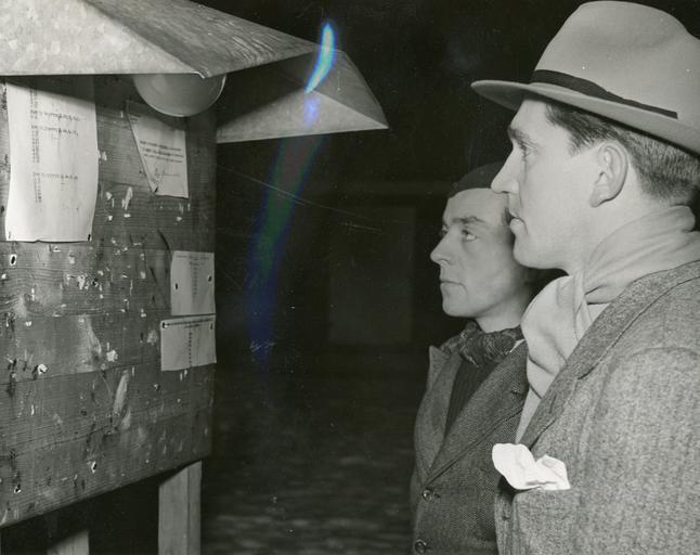 | Keywords: Norsk mottagercentral på Kjesäter. På Kjesäter slott i syd-Sverige har de norske myndigheter en mottagercentral for flyktninger fra Norge. Her registreres og legeundersøkes alle flyktninger før de reiser videre, noen til de norske politiforlegningenr, andre til skoler eller sivilt arbeide, familieforlegninger, kvinneforlegninger etc. Bildet er fra Kjesäter og viser to norske flyktninger studere oppslagstavlen, hvor der blant annet er slått opp numrene på dem som skal reise videre neste dag. Stockholm 1.2.45. RA/PA-1209/Uc/65/1-2/S 5477 Norsk mottagercentral på Kjesäter. På Kjesäter slott i syd-Sverige har de norske myndigheter en mottagercentral for flyktninger fra Norge. Her registreres og legeundersøkes alle flyktninger før de reiser videre, noen til de norske politiforlegningenr, andre til skoler eller sivilt arbeide, familieforlegninger, kvinneforlegninger etc. Bildet er fra Kjesäter og viser to norske flyktninger studere oppslagstavlen, hvor der blant annet er slått opp numrene på dem som skal reise videre neste dag. Stockholm 1.2.45. RA/PA-1209/Uc/65/1-2/S 5477 |