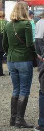 Keywords: Kl boots jeans.jpg en woman wearing knee-length boots over jeans 2010 own Biffthree 2010-09-23 Fashion in 2010 Women wearing jeans Women with boots Standing women seen from behind