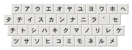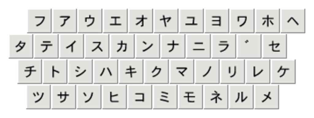 Keywords: Kl jis b 9509 kana.png JIS B 9509 keyboard layout kana 2007-08-15 own assumed Komatta Japanese keyboard layouts