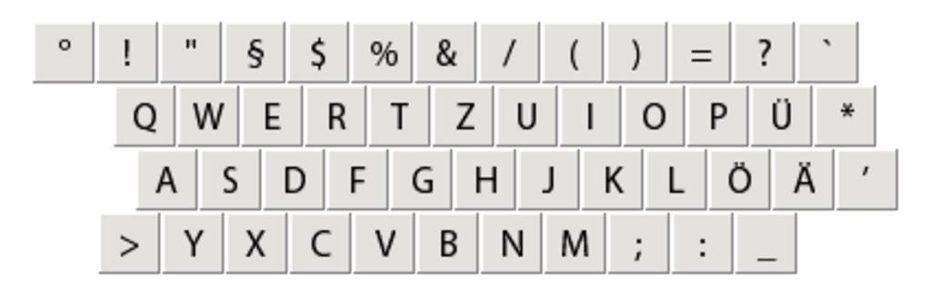 Keywords: Kl qwerty ge shifted.png QWERTY keyboard layout German shifted 2007-08-15 own assumed Komatta QWERTZ keyboard layouts German language