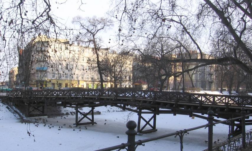 Keywords: KladkaSwAntoniego.jpg Wrocław Poland pedestrian bridge of St Anthony over town moat kładka św Antoniego przez fosę miejską 2006-03-05 own assumed Julo Św Antoniego footbridge Moat in Wrocław