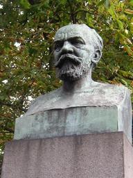 Keywords: Kladno KL CZ Antonin Dvorak memorial 054.jpg Detail horní části pomníku Antonína Dvořáka busta od sochaře Jaroslava Volfa na Kladně; severozápadní roh Dvořákových sadů při křižovatce ulic J Hory a Petra Bezruče Pomník byl odhalen roku 1926 Jen asi 20m jižněji se v parku někdejším hřbitově nalézá pomníček připomínající místo pohřbu skladatelovy matky viz souviející foto Memorial to composer Antonín Dvořák bust by Jaroslav Volf in Kladno Kladno District Czech Republic Erected in 1926 Detail of upper part Monuments and memorials in Kladno Busts in Kladno 1926 monuments and memorials Monuments and memorials to Antonín Dvořák Jaroslav Volf Dvořákovy sady Kladno