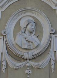 Keywords: Klagenfurt - St Egid - Außen2.JPG Denkmalgeschütztes Objekt Österreich 49309 Klagenfurt Hauptstadtpfarrkirche Klagenfurt own Raul de Chissota 2012-03-21 PD St Egid Klagenfurt Sculptures of Madonna in Carinthia