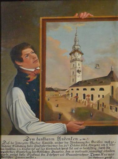 | Keywords: Klagenfurt - St Egid - Votivbild.JPG Denkmalgeschütztes Objekt Österreich 49309 Klagenfurt Hauptstadtpfarrkirche Klagenfurt Votivbild für die wunderbare Rettung des Gesellen Markus Koinitsch 1834 Turmsturz own Raul de Chissota 2013-06-04 PD St Egid Klagenfurt Ex-voto-paintings in Carinthia |