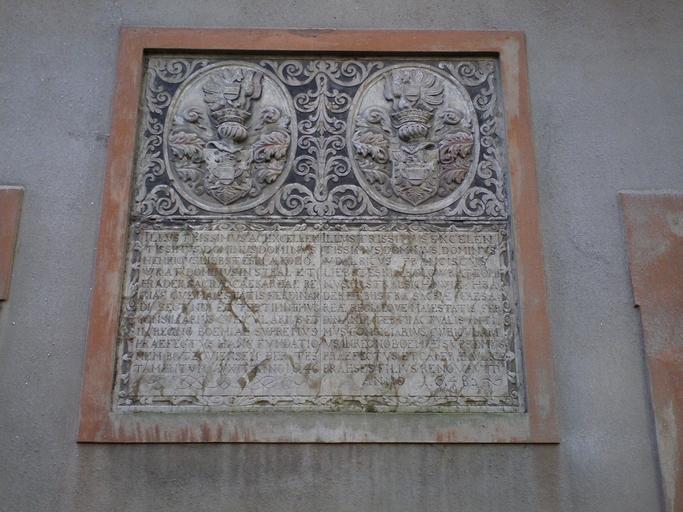 Keywords: Klášter ročov deska.JPG cs detail - klášter dolní ročov own M Louny 2011-12-12 Klášter Dolní Ročov Coats of arms of Kolowrat family