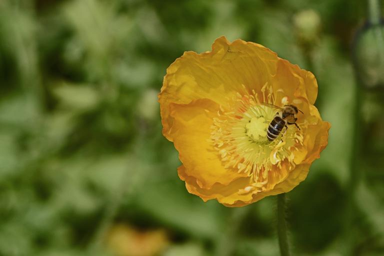 Keywords: klatschmohn flowers poppy yellow poppy flower nature spring poppies mohngewaechs blossoms color cheerful colorful plant farbenpracht close bee flower garden