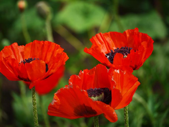 Keywords: klatschmohn triplets rain field blossom bloom open poppy red blossoms flower three colorful nature cheerful summer poppies good mood red green