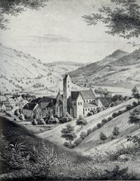 Keywords: Kloster Alpirsbach.jpg Kloster Alpirsbach im Schwarzwald Lithographie von Federer nach Th Diebold 1839 Ausschnitt Eingescannt aus Die Chronik der Grafen von Zimmern hrsg von Hansmartin Decker-Hauff Bd 1 Darmstadt 1964 S 135 PD-old Kloster Alpirsbach |