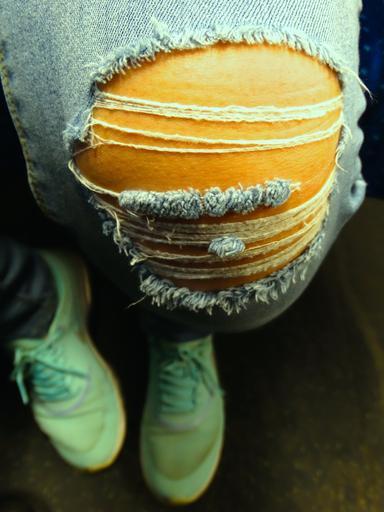 Keywords: knee jeans shoes crack hole young people fashion kleidungsstyl