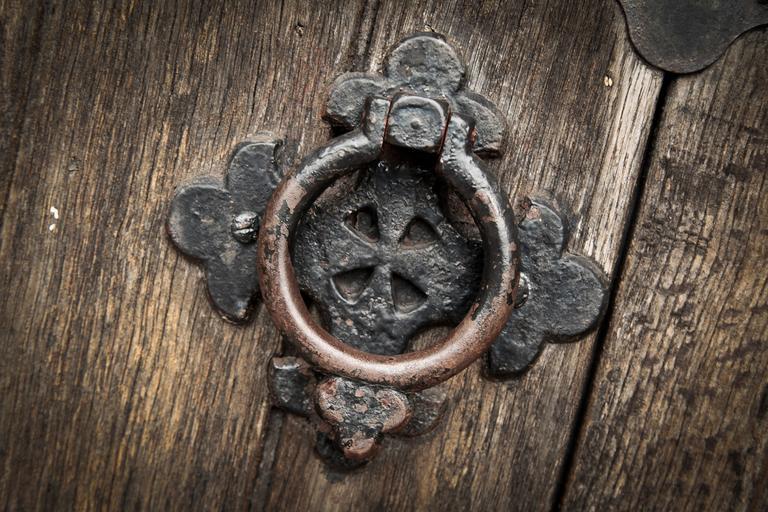 Keywords: knocker door doorknocker metal wood handle front knock traditional security church decorative ring entrance ornate medieval craftsmanship decor enter closed entry vintage antique wooden rustic
