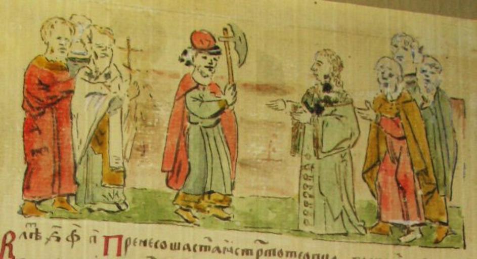 | Keywords: Knyaz gleb ubivaet volhva.jpg ru Князь Глеб убивает волхва овго од 1071 год иниатю а Радзивиловской летописи century 15 http //www hrono ru/biograf/bio_g/gleb1078 php author other versions Custom license marker 2015 05 30 PD-old-100 Uploaded with UploadWizard Details of Radzivill Chronicle Volkhvs |