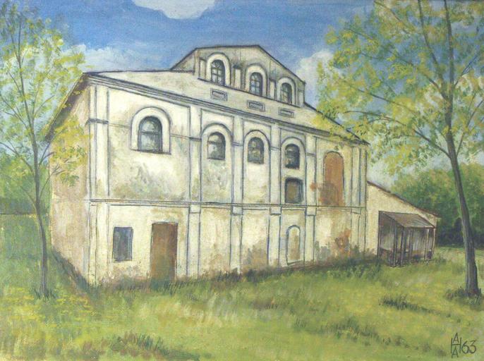 | Keywords: Kobrin - synagogue 1963 Anatoly Nalivaev.jpg ru Синагога в Коб ине 1963 год Яичная темпе а ДВП Художник Анатолий Александ ович аливаев 2012-09-14 12 19 42 own NalivaevAA PermissionOTRS 2012121110004868 cc-zero Paintings of Synagogues in Belarus by Anatoly Nalivaev Buildings in Kobryn Uploaded with UploadWizard 1963 paintings in Belarus |