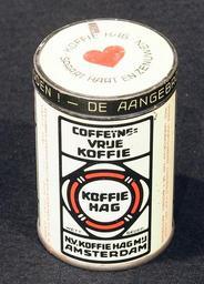 | Keywords: Koffie Hag bus, foto 1.JPG Very old packaging of a Dutch product that is not produced and not sold any more Photographed at a collector of Droste For info see http //www tincollectors nl/ tincollectors nl or email info tincollectors nl own 2014-04-11 09 26 32 Alf van Beem CC-Zero Trademarked Coffee tins |