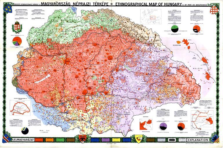 Keywords: Kogutowicz Károly Magyarország Néprajzi Térképe.jpg hu Kogutowicz Károly Magyarország Néprajzi Térképe 1927<br> Magyarország 1 300 000 méretarányú néprajzi nemzetiségi azaz anyanyelvi térképe A munkálatok elindítására a Magyar Földrajzi Társaság 1918 október 5-én tartott heti összejövetelén tettek javaslatot Teleki Pál indítványára Kogutowicz Károly Bátky Zsigmond és Littke Aurél vettek részt a szerkesztésben de a munkálatokba később más geográfusok is bekapcsolódtak A kiváló szakemberek munkájukhoz a Monarchia 1 200 ezres méretarányú topográfiai térképművét választották térképi alapnak és e térképmű lapjaiból az Államnyomdában hasonló méretarányban de már magyar helynevekkel negyvenöt szelvényt sokszorosíttattak Vállalkozásuk rendkívüli méretére jellemző hogy a lakosság adatfelvételében nemcsak az ország minden egyes településéig hanem ezen túlmenően a százfős lélekszámú lakott helyek adataiig mentek le Az egész térkép 13 ezer települést és még további hétezer lakott helyet jelöl Horvátországot nem vonták be az adatfelvételbe A negyvenöt térképlapon százezernél több kör alakú térképjelet kellett elhelyezni a népesség ábrázolására Az értékarányos körök ötven száz ötszáz és ezer lakost jelölnek A szerkesztők arra is gondot fordítottak hogy a jeleket a település alakjának megfelelően a település kontúrján belül helyezzék el Csak Budapestnek Pozsonynak Sopronnak Szombathelynek Győrnek és Temesvárnak volt több lakosa mint amennyi a település rajzának térképi felületén ábrázolható volt így a körjelek egy része ezeknél kívül került a város határán A kéziratos térképeket huszonöt-harminc rajzoló készítette és huszonhárom példányban készült el Valamennyi megkülönböztethető nemzetiség kézi festéssel külön színt kapott Ez akkor a világ legnagyobb méretarányú és legnagyobb méretű néprajzi térképe volt Soha egyetlen térkép sem ment el a százfős lélekszámú lakott helyek részletességéig Ez az egyik nagy jelentősége ennek a munkának A másik az hogy ezzel megoldódott a legfőbb módszertani probléma ugyanis nagy térképi pontossággal maradtak ki az ábrázolásból a lakatlan területek és így kitűntek a népsűrűségi viszonyok Mindenkoron dicsősége marad a magyar kartográfiának ennek a nagy néprajzi térképnek ilyen rövid idő pár hét alatti előállítása Ez a korabeli nemzetközi szakirodalomban nagy feltűnést keltett Mivel a mű csak kevés kéziratos példányban készült ezért felmerült az igény hogy a térkép nyomtatásban is napvilágot lásson A térkép nyomtatásban a Földrajzi Intézet kiadásában kicsinyítve jelent meg A térkép címe Magyarország 1 300 000 néprajzi térképe Dedinszky Vladimir Ferenczi István Halász Gyula Herbst Ernő Kogutowicz Lajos Littke Aurél Madarassy László Marczell György Schmidt Tibold Steiner Lajos közreműködésével szerkesztették Bátky Zsigmond és Kogutowicz Károly Ez Magyarország legnagyobb nyomtatott néprajzi térképe amely francia és angol kiadásban is megjelent 1927 http //pangea blog hu/2014/06/04/magyarorszag_feldarabolja_onmagat Kogutovicz Károly other versions pd-old Uploaded with UploadWizard Culture of Hungary Károly Kogutowicz Maps of the history of Hungary between the World Wars Historical maps of ethnic groups in Hungary Historical maps of ethnic groups in Romania Historical maps of ethnic groups in Transylvania Historical maps of ethnic groups in Serbia Historical maps of ethnic groups in Vojvodina Historical maps of ethnic groups in Croatia Historical maps of ethnic groups in Slovenia Historical maps of ethnic groups in Austria Historical maps of ethnic groups in Slovakia Historical maps of ethnic groups in Ukraine Maps of the Treaty of Trianon |