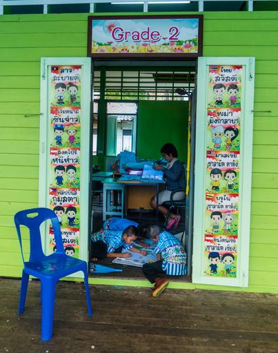 Keywords: koh panyee island thailand phuket floating fishing village classroom children students person people