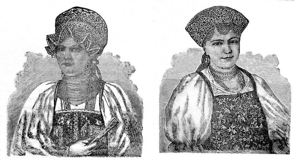 MAKE A MEME View Large Image Kokoshnik (headdress) Staraya Russa.jpg ru Ста о усские головные убо ы конца XVIII в с  ефедью и подвесками Слева девичий сп ава замужней женщины Г авю ...