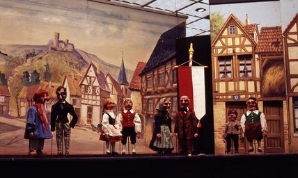 | Keywords: Köln - 017 Hänneschen Theater.jpg en Cologne Puppet Theater Hännesche de Hänneschen Puppentheater der Stadt Köln Figuren von links Tünnes Schäl Bärbelchen Hänneschen Bestemo Besteva Speimanes Mählwurms Pitter Wirt own Monster4711 1971 Cc-zero Hänneschen-Theater |