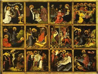 | Keywords: Kölner Maler um 1450-1460 001.jpg Artwork Anonymous Cologne Andachtsbild mit zwölf Szenen aus dem Leben Christi ~ 1450-1460 LangSwitch Canvas Leinwand Doek cm 75 2 97 Wallraf-Richartz-Museum Cologne Provenance by 1988-09 Private collection Sweden Zweden ProvenanceEvent 1986-09 loan Wallraf-Richartz-Museum Cologne ProvenanceEvent 1988-09 purchase Wallraf-Richartz-Museum Cologne Postcard WRM 3606 Other versions PD-old-100 ImageNote 1 170 101 77 176 1561 1187 2 LangSwitch Inschrift Inscription Inscriptie ave gratia plena dns tecum ImageNoteEnd 1 ImageNote 2 113 36 249 127 1561 1187 2 LangSwitch Inscription Inschrift Inscriptie Ecce ancilla dni fiat michi scdm vbu tuu ImageNoteEnd 2 Cycles of the Life of Christ in art 15th-century paintings of New Testament Paintings in the Wallraf-Richartz-Museum Anonymous 15th-century paintings in Germany Angels with banners 17th-century oil on canvas paintings in Germany |