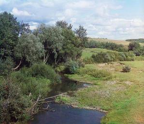 View Original:Koloch_river_from_the_bridge_at_the_entrance_of_Borodino._Borodino,_1911,_Prokudin-Gorskii.jpg (931x801)