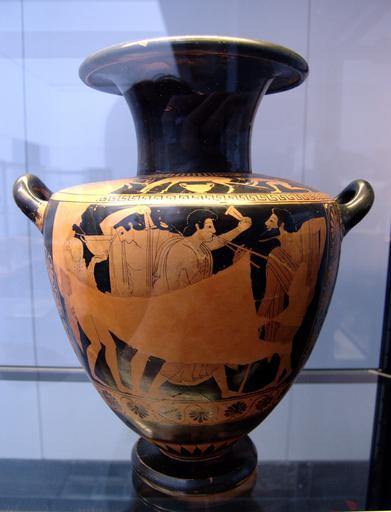 Keywords: Komos Staatliche Antikensammlungen 2422.jpg Komosszene Einer hält einen Skyphos zwei Andere musizieren Krotala und Aulos der Letzte singt Attischer rotfiguriger Hydria um 500 v Chr Aus Vulci Komos scene one holds a skyphos two others are playing music crotales and aulos the last one sings Attic red-figure hydria ca 500 BC From Vulci Scène de komos l'un tient un skyphos deux autres font de la musique crotales et aulos et le dernier chante Hydrie attique à figures rouges v 500 av J -C Provenance Vulci Museum Staatliche Antikensammlungen Room 3 Beazley ARV2 24 8 1620 object history credit line accession number Inv 2422 J 50 User Bibi Saint-Pol own work 2007-02-10 other versions Auloi in ancient Greek pottery Crotala Komos scenes Skyphoi in art Ancient Greek pottery hydriai Phintias Red-figure pottery in the Staatliche Antikensammlungen Staatliche Antikensammlungen - Room 3 500s BC Ancient Greek pottery from Vulci Dance in ancient Greek pottery |