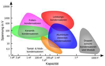 | Keywords: Kondensatoren Kapazität versus Spannungsfestigkeit.svg Spannungsfestigkeit und Kapazität diverser Kondensator-Technologien Selbstgezeichnet mit Inkscape nach Daten aus der Zeitschrift Elektronik Ausgabe 22/2006 Seite 60 Neuere Alternative File Kondensatoren-Klassen Kapazität vs Spannungsfestigkeit svg 2006-12-06 own assumed Journey234 Capacitor diagrams | ||||
