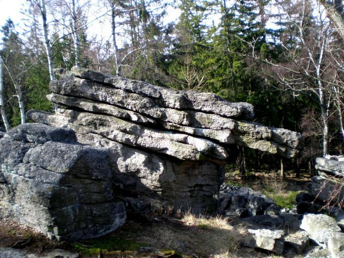 Keywords: Koníček.JPG cs Skála Koníček která dala jméno vrchu 667 m na Jineckých Hřebenech own Brdy-res publica 2008-06-24 public domain Rocks in Central Bohemian Region Jinecké Hřebeny