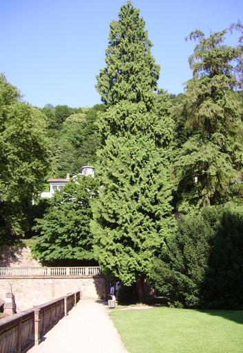 Keywords: Koniferen auf der Zwischenterrasse im Hortus Palatinus.jpg part of Heidelberg castle Heidelberger Schloss <br> 2006-06-23 own Immanuel Giel Hortus Palatinus