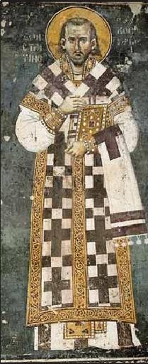 Keywords: Konstantinos Cabasilas Ohrid Perivleptos.jpg bg Ф еска на Константин Кавасила от ох идската цъ ква Света Бого одица Пе ивлепта Свети Климент от ихаил и Евтихий 2011-10-14 http //www ohrid org mk/mk/crkvi/sv_bogorod htm Michael Astrapas and Eutychios PD-old-100 PD-Art Uploaded with UploadWizard Paintings in the Church of the Theotokos Peribleptos Archbishopric of Ohrid |