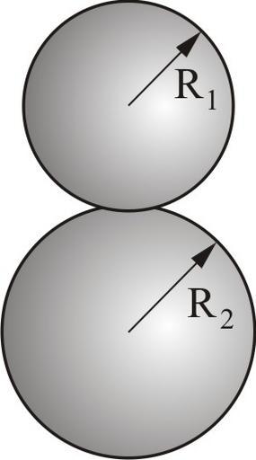 Keywords: Kontakt Kugel Kugel.jpg en Contact between two elastic spheres de Kontakt zwischen zwei Kugeln es Contacto entre dos esferas elásticas own Valentin Popov 2008-12-18 Contact mechanics