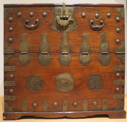 | Keywords: Korean chest, Choson dynasty, pine, oak and brass, Honolulu Academy of Arts.JPG en Korean chest Joseon dynasty pine oak and brass Honolulu Museum of Art accession 11727 1 own Hiart photo 2015 Cc-zero Korean furniture in the Honolulu Museum of Art Chests |