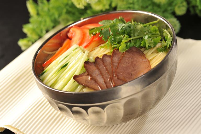 Keywords: korean cold noodles bacon coriander cucumber noodles tomato delicious food asia
